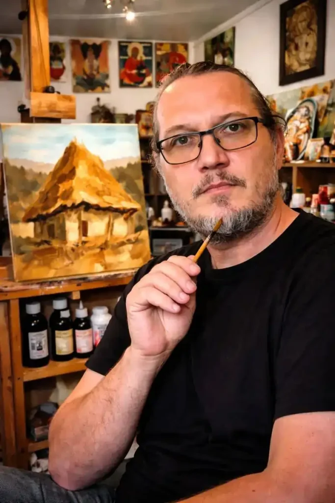 Prin pictură figurativă contemporană și iconografie reinterpretată, dezvolt un demers artistic coerent, în care tradiția dialoghează cu sensibilitatea contemporană.