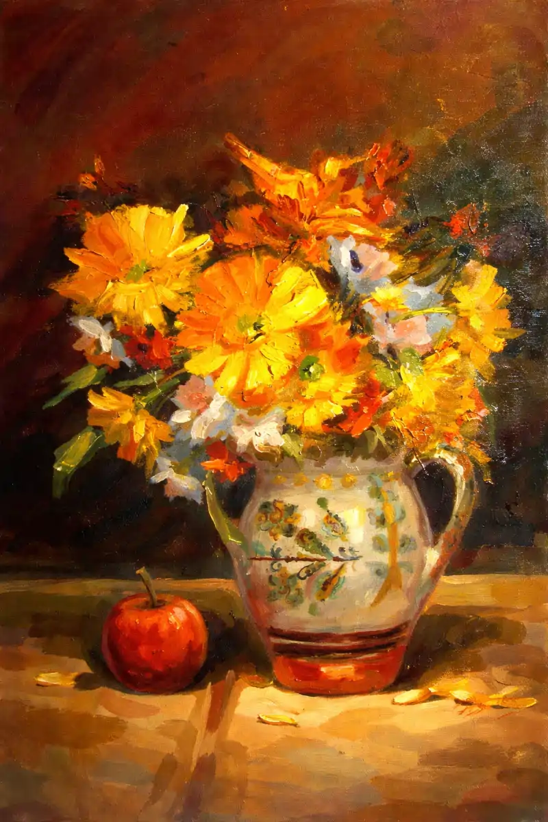 Crizanteme – pictură în ulei pe pânză
